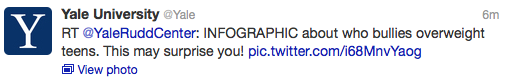 Overweight Teens Bullied by More Than Peers Adam ChiaraJuly 24, 2013July 25, 2013Yale Rudd Center Post navigation PreviousNext Share this: Click to share on Facebook (Opens in new window) Facebook Click to share on LinkedIn (Opens in new window) LinkedIn Click to share on X (Opens in new window) X Click to email a link to a friend (Opens in new window) Email Click to print (Opens in new window) Print More Click to share on Pinterest (Opens in new window) Pinterest Click to share on Reddit (Opens in new window) Reddit Click to share on Pocket (Opens in new window) Pocket Click to share on Telegram (Opens in new window) Telegram Click to share on WhatsApp (Opens in new window) WhatsApp